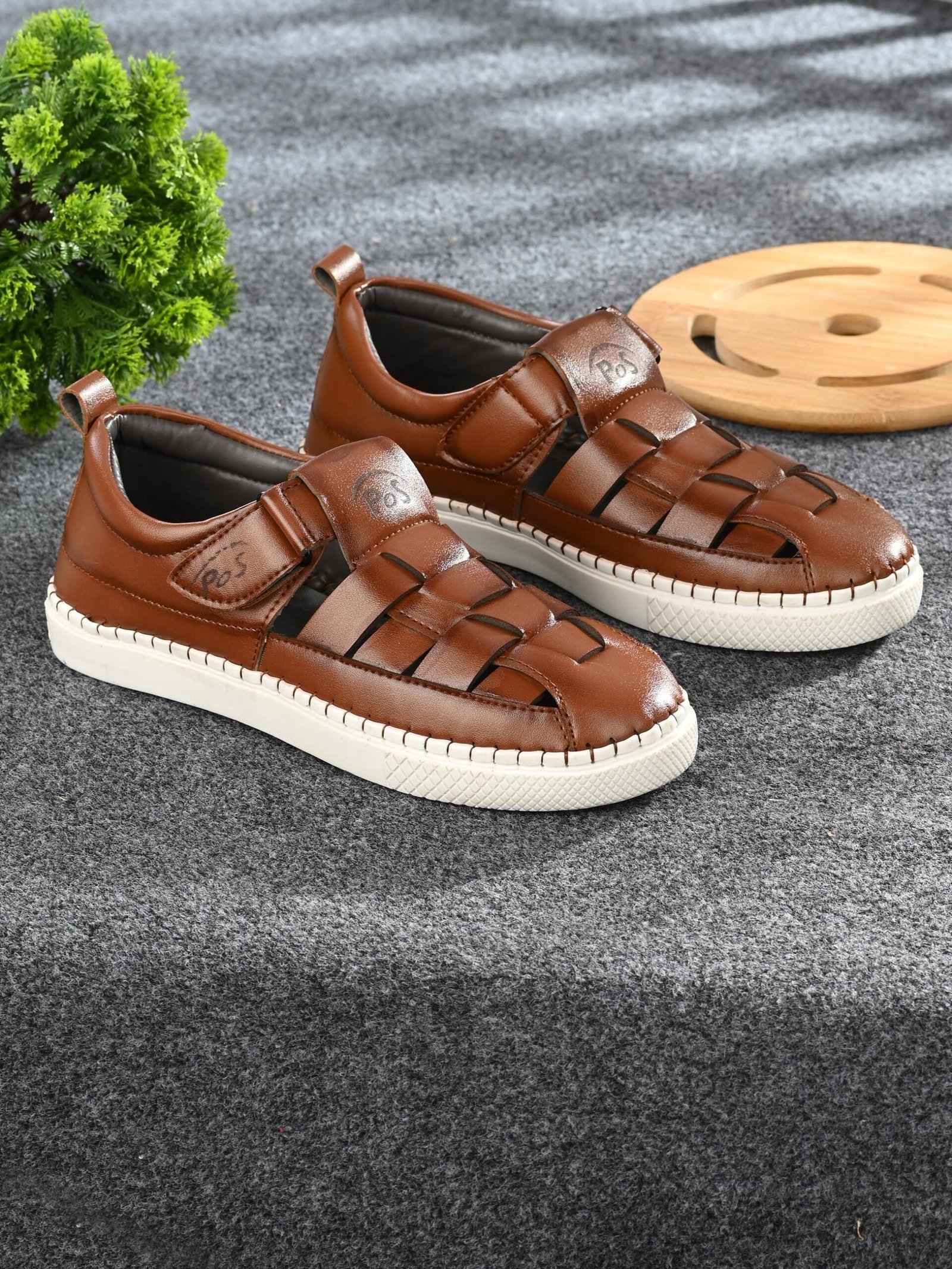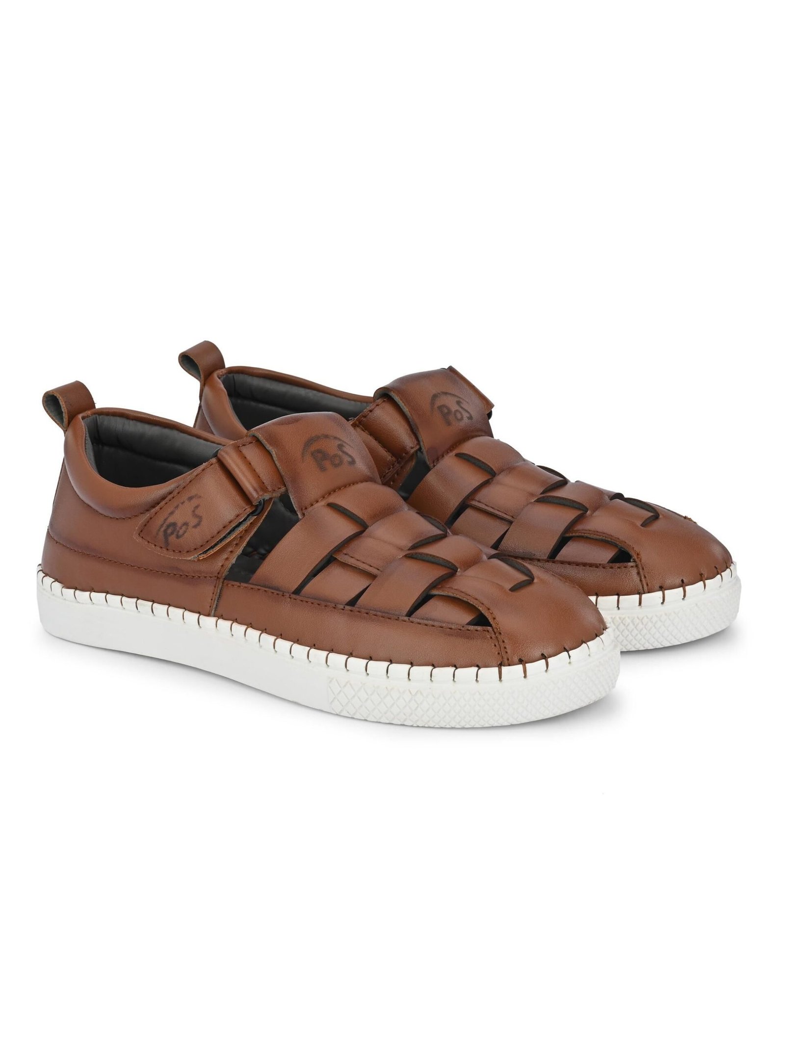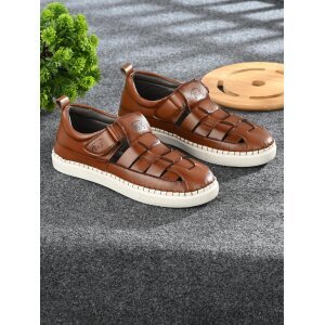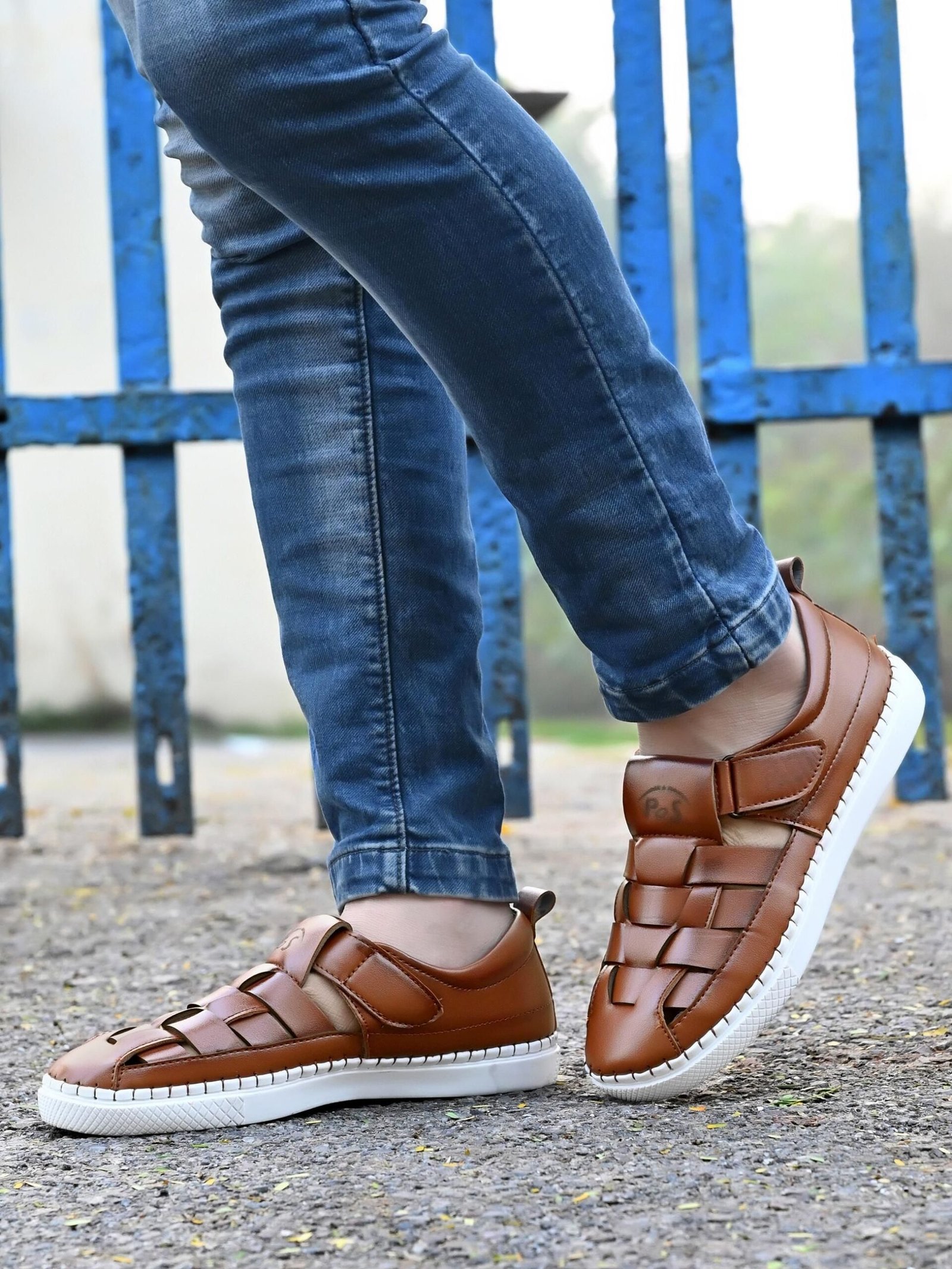 Men’s Casual PU Leather Tan Sandals for versatile summer wear.